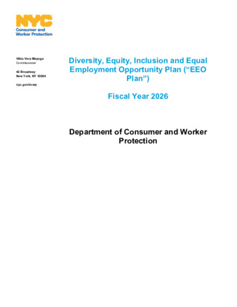 The Department of Consumer and Worker Protection's Diversity and Equity, Inclusion and Equal Employment Opportunity Plan for Fiscal Year 2026.