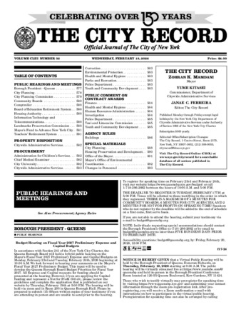 The City Record newspaper publishes notices which includes but is not limited to public hearings and meetings, public auctions and sales, solicitations, and awards and official rules proposed and adopted by city agencies.