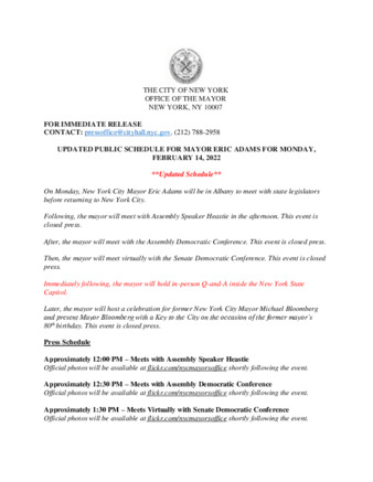 UPDATED PUBLIC SCHEDULE FOR MAYOR ERIC ADAMS FOR MONDAY, FEBRUARY 14, 2022
