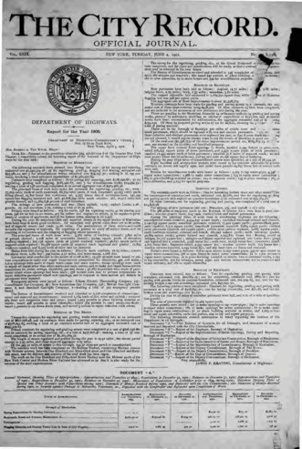 The City Record newspaper publishes notices which includes but is not limited to: public hearings and meetings, public auctions and sales, solicitations and awards and official rules proposed and adopted by city agencies. This is the City Record Newspaper for June 04, 1901.
