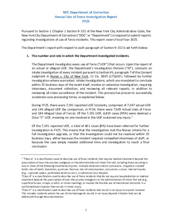 Pursuant to Local Law 216 of 2017, this report provides information regarding the investigations of the use of force by correction officers on persons in custody.