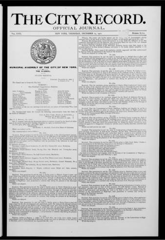 The City Record newspaper publishes notices which includes but is not limited to: public hearings and meetings, public auctions and sales, solicitations and awards and official rules proposed and adopted by city agencies. This is the City Record Newspaper for December 19, 1901.