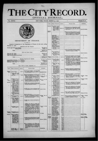 The City Record newspaper publishes notices which includes but is not limited to: public hearings and meetings, public auctions and sales, solicitations and awards and official rules proposed and adopted by city agencies. This is the City Record Newspaper for March 30, 1900.