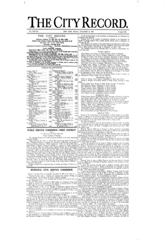 The City Record newspaper publishes notices which includes but is not limited to: public hearings and meetings, public auctions and sales, solicitations and awards and official rules proposed and adopted by city agencies. This is the City Record Newspaper for December 23, 1910.
