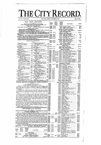 The City Record newspaper publishes notices which includes but is not limited to: public hearings and meetings, public auctions and sales, solicitations and awards and official rules proposed and adopted by city agencies. This is the City Record Newspaper for November 05, 1917.