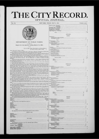 The City Record newspaper publishes notices which includes but is not limited to: public hearings and meetings, public auctions and sales, solicitations and awards and official rules proposed and adopted by city agencies. This is the City Record Newspaper for May 06, 1881.