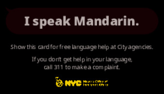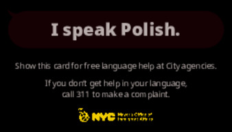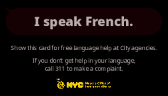 Palm cards available in multiple languages which allow community members to quickly and conveniently indicate their preferred language/the one they are most familiar with.