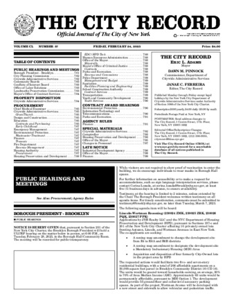 The City Record newspaper publishes notices which includes but is not limited to public hearings and meetings, public auctions and sales, solicitations and awards and official rules proposed and adopted by city agencies.