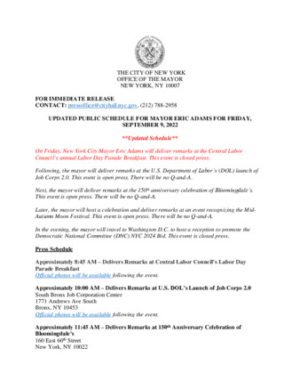 UPDATED PUBLIC SCHEDULE FOR MAYOR ERIC ADAMS FOR FRIDAY, SEPTEMBER 9, 2022
