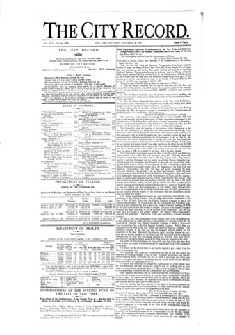 The City Record newspaper publishes notices which includes but is not limited to: public hearings and meetings, public auctions and sales, solicitations and awards and official rules proposed and adopted by city agencies. This is the City Record Newspaper for November 30, 1918.