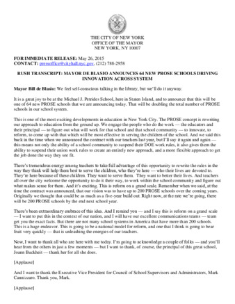 Mayor's Press Release: MAYOR DE BLASIO ANNOUNCES 64 NEW PROSE SCHOOLS DRIVING INNOVATION ACROSS SYSTEM