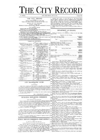 The City Record newspaper publishes notices which includes but is not limited to: public hearings and meetings, public auctions and sales, solicitations and awards and official rules proposed and adopted by city agencies. This is the City Record Newspaper for May 29, 1911.