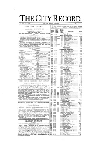 The City Record newspaper publishes notices which includes but is not limited to: public hearings and meetings, public auctions and sales, solicitations and awards and official rules proposed and adopted by city agencies. This is the City Record Newspaper for June 04, 1916.