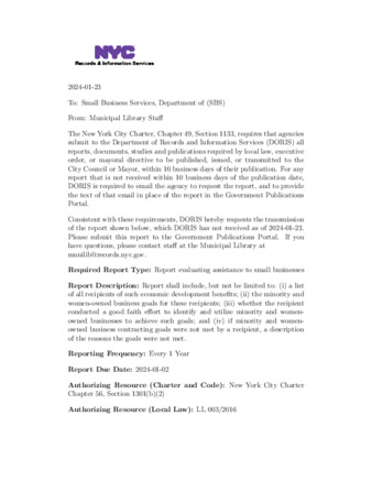 - Report evaluating assistance to small businesses