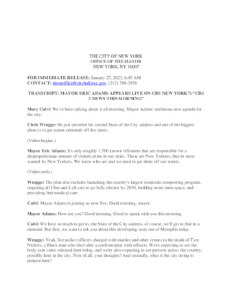 TRANSCRIPT: MAYOR ERIC ADAMS APPEARS LIVE ON CBS NEW YORK’S “CBS 2 NEWS THIS MORNING”