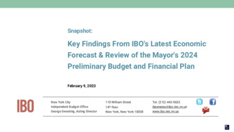 Snapshot: Key Findings From IBO's Latest Economic Forecast & Review of the Mayor's 2024 Preliminary Budget and Financial Plan
