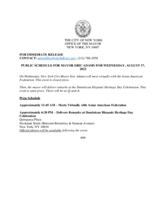 PUBLIC SCHEDULE FOR MAYOR ERIC ADAMS FOR WEDNESDAY, AUGUST 17, 2022
