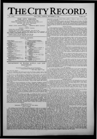 The City Record newspaper publishes notices which includes but is not limited to: public hearings and meetings, public auctions and sales, solicitations and awards and official rules proposed and adopted by city agencies. This is the City Record Newspaper for September 22, 1903.