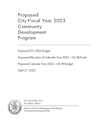 Proposed City Fiscal Year 2023 Community Development Program