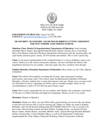 A transcript about New York City Mayor Eric Adams holding a ribbon-cutting ceremony for new Tommie Agee Middle School.