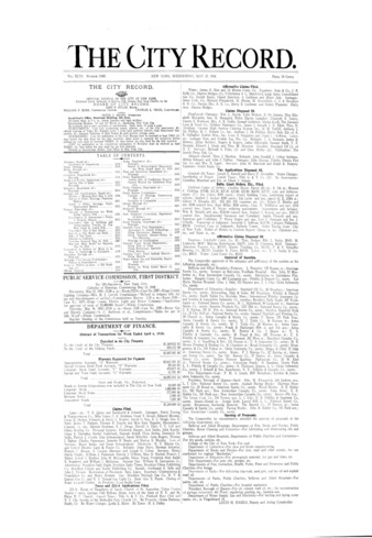 The City Record newspaper publishes notices which includes but is not limited to: public hearings and meetings, public auctions and sales, solicitations and awards and official rules proposed and adopted by city agencies. This is the City Record Newspaper for May 15, 1918.