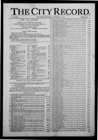 The City Record newspaper publishes notices which includes but is not limited to: public hearings and meetings, public auctions and sales, solicitations and awards and official rules proposed and adopted by city agencies. This is the City Record Newspaper for December 14, 1904.