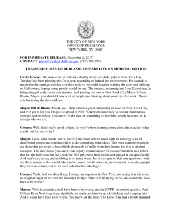 Press Release: TRANSCRIPT: MAYOR DE BLASIO APPEARS LIVE ON MORNING EDITION