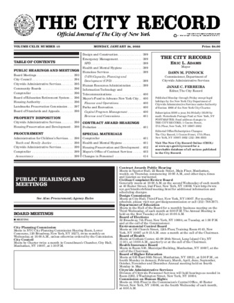 The City Record newspaper publishes notices which includes but is not limited to: public hearings and meetings, public auctions and sales, solicitations and awards and official rules proposed and adopted by city agencies.