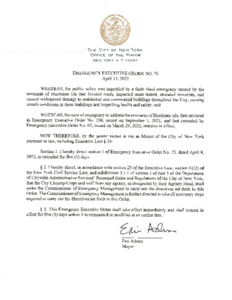 Emergency Executive Order No. 76.