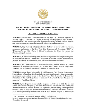 Resolution on the Department of Correction’s Failure to Adequately Respond to Board Requests