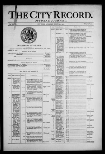 The City Record newspaper publishes notices which includes but is not limited to: public hearings and meetings, public auctions and sales, solicitations and awards and official rules proposed and adopted by city agencies. This is the City Record Newspaper for March 31, 1900.