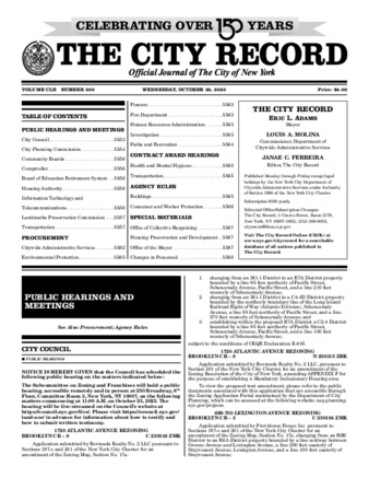 The City Record newspaper publishes notices which includes but is not limited to public hearings and meetings, public auctions and sales, solicitations and awards and official rules proposed and adopted by city agencies.
