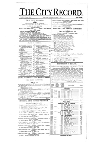 The City Record newspaper publishes notices which includes but is not limited to: public hearings and meetings, public auctions and sales, solicitations and awards and official rules proposed and adopted by city agencies. This is the City Record Newspaper for October 05, 1918.