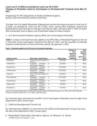 Pursuant to Local Law 37, this report summarizes changes to the carcinogen and developmental toxin list.