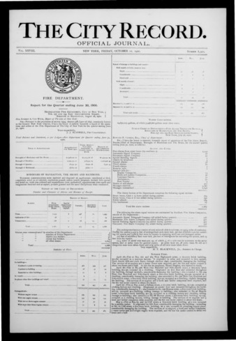 The City Record newspaper publishes notices which includes but is not limited to: public hearings and meetings, public auctions and sales, solicitations and awards and official rules proposed and adopted by city agencies. This is the City Record Newspaper for October 12, 1900.