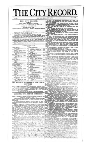The City Record newspaper publishes notices which includes but is not limited to: public hearings and meetings, public auctions and sales, solicitations and awards and official rules proposed and adopted by city agencies. This is the City Record Newspaper for June 14, 1912.