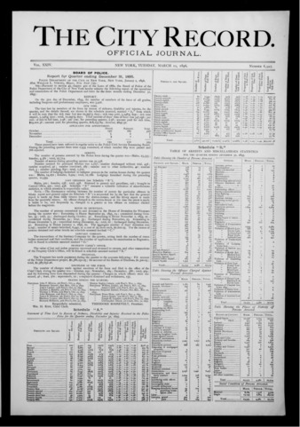 The City Record newspaper publishes notices which includes but is not limited to: public hearings and meetings, public auctions and sales, solicitations and awards and official rules proposed and adopted by city agencies. This is the City Record Newspaper for March 10, 1896.
