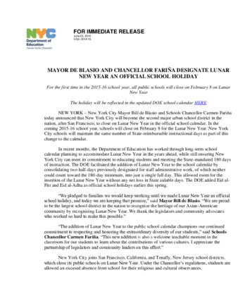 Mayor's Press Release: MAYOR DE BLASIO AND CHANCELLOR FARIÑA DESIGNATE LUNAR NEW YEAR AN OFFICIAL SCHOOL HOLIDAY
