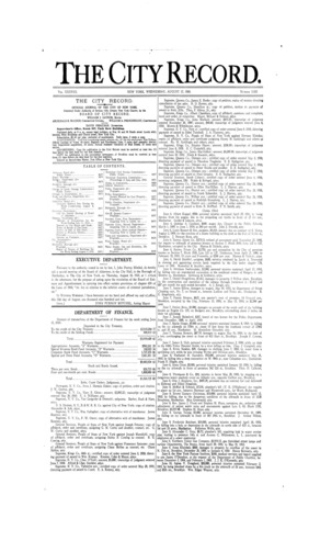 The City Record newspaper publishes notices which includes but is not limited to: public hearings and meetings, public auctions and sales, solicitations and awards and official rules proposed and adopted by city agencies. This is the City Record Newspaper for August 17, 1910.
