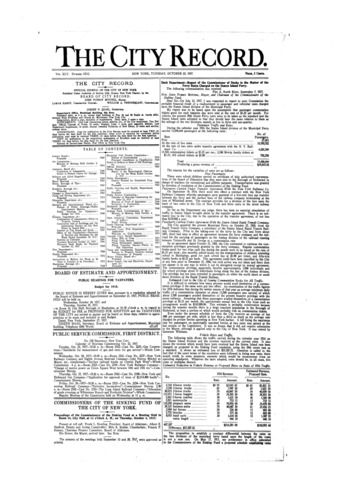 The City Record newspaper publishes notices which includes but is not limited to: public hearings and meetings, public auctions and sales, solicitations and awards and official rules proposed and adopted by city agencies. This is the City Record Newspaper for October 23, 1917.