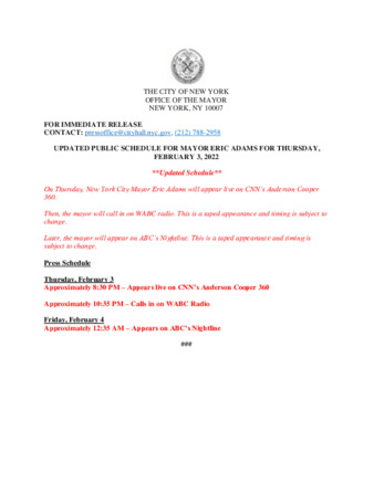 UPDATED PUBLIC SCHEDULE FOR MAYOR ERIC ADAMS FOR THURSDAY, FEBRUARY 3, 2022