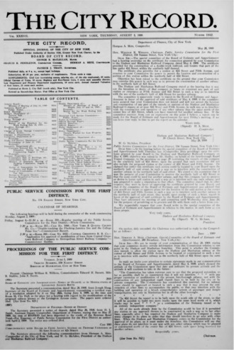 The City Record newspaper publishes notices which includes but is not limited to: public hearings and meetings, public auctions and sales, solicitations and awards and official rules proposed and adopted by city agencies. This is the City Record Newspaper for August 05, 1909.