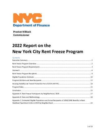 - Report on Eligibility of Seniors for Rent Increase Exemption Programs