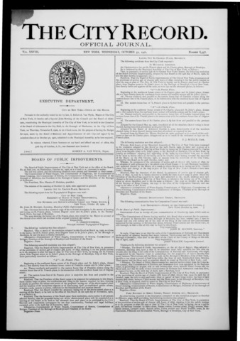 The City Record newspaper publishes notices which includes but is not limited to: public hearings and meetings, public auctions and sales, solicitations and awards and official rules proposed and adopted by city agencies. This is the City Record Newspaper for October 31, 1900.