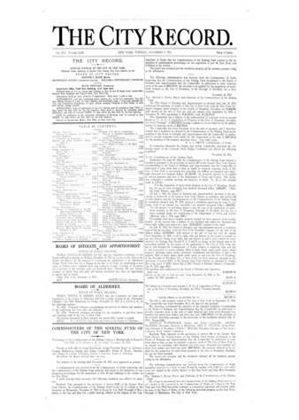The City Record newspaper publishes notices which includes but is not limited to: public hearings and meetings, public auctions and sales, solicitations and awards and official rules proposed and adopted by city agencies. This is the City Record Newspaper for December 09, 1913.