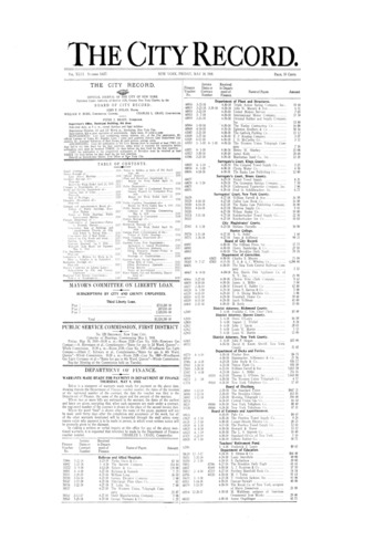 The City Record newspaper publishes notices which includes but is not limited to: public hearings and meetings, public auctions and sales, solicitations and awards and official rules proposed and adopted by city agencies. This is the City Record Newspaper for May 10, 1918.