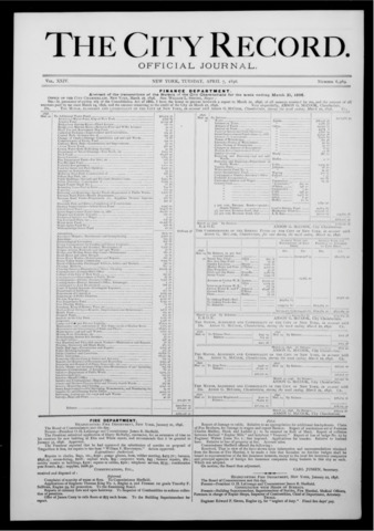 The City Record newspaper publishes notices which includes but is not limited to: public hearings and meetings, public auctions and sales, solicitations and awards and official rules proposed and adopted by city agencies. This is the City Record Newspaper for April 07, 1896.