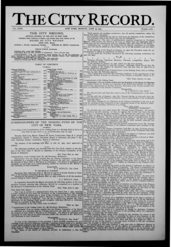 The City Record newspaper publishes notices which includes but is not limited to: public hearings and meetings, public auctions and sales, solicitations and awards and official rules proposed and adopted by city agencies. This is the City Record Newspaper for June 29, 1903.