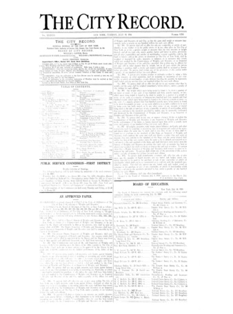 The City Record newspaper publishes notices which includes but is not limited to: public hearings and meetings, public auctions and sales, solicitations and awards and official rules proposed and adopted by city agencies. This is the City Record Newspaper for July 19, 1910 .