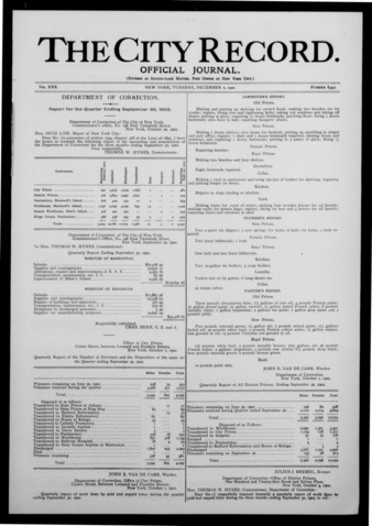 The City Record newspaper publishes notices which includes but is not limited to: public hearings and meetings, public auctions and sales, solicitations and awards and official rules proposed and adopted by city agencies. This is the City Record Newspaper for December 02, 1902.